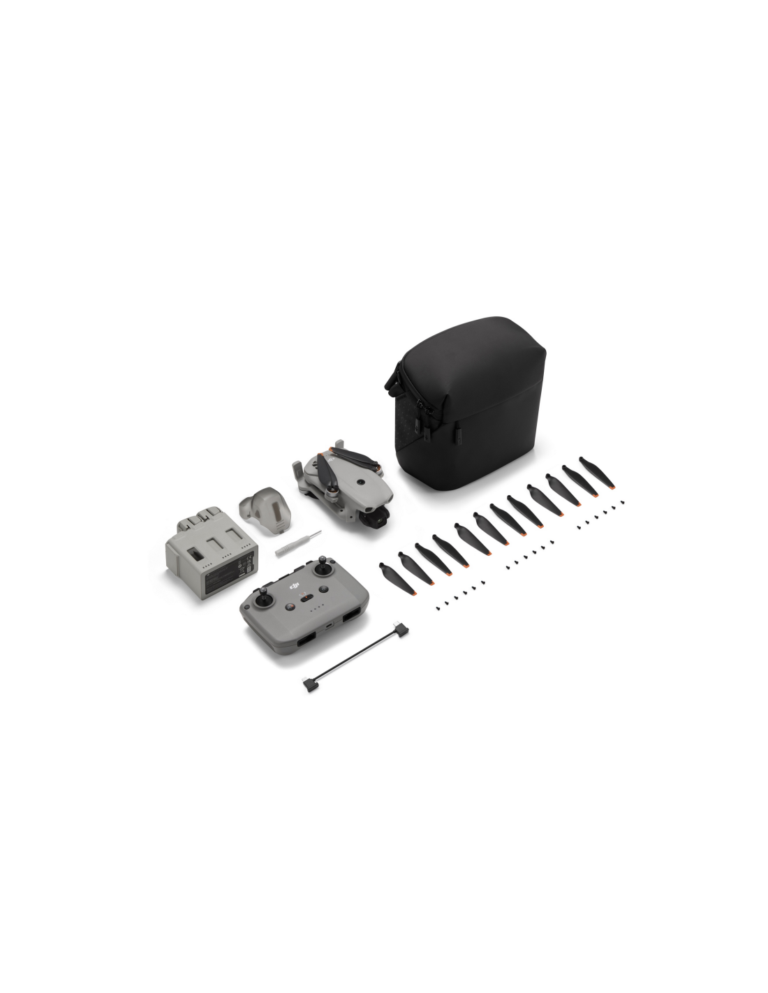 Incluye  Mando a distancia sin pantalla DJI RC- N3, 3 baterias de vuelo inteligente , un centro de carga, una bosa de bandolera  y mas.